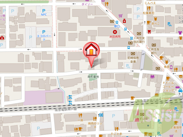 賃貸・売買のアシスト阪急武庫之荘店所在地:尼崎市武庫之荘2丁目5-17 秋岡ビル102号